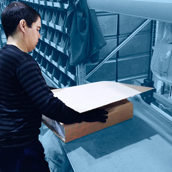8) На данном этапе товар кладется в коробку, но из-за нестандартной формы товара мы подгоняем коробку под размеры товара, после чего проклеиваем ее и плотно обматываем пленкой, для дополнительной фиксации.